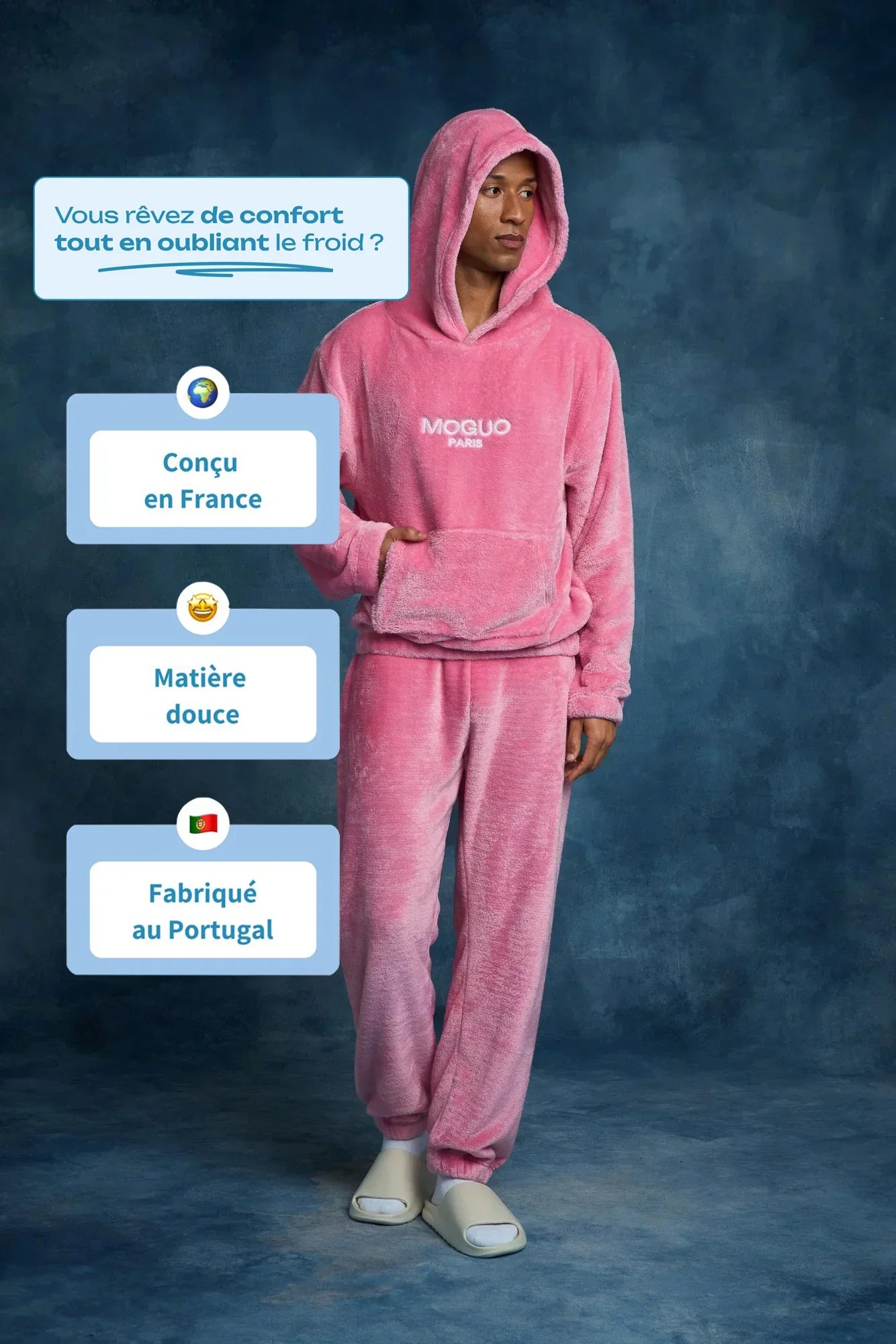 Ultra-moelleux, léger et enveloppant, la matière Moguo offre une chaleur immédiate tout en restant parfaitement respirant. C’est la pièce idéale pour les matinées fraîches, les soirées détente ou les journées où vous voulez simplement ressentir un bien-être total.